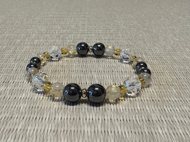ヘマタイトは敢えて磁気入りを採用しておりますが、他の磁力のあるものにくっつきますので、ご注意くださいませ。(スマホ等と一緒に持っても影響はございません)